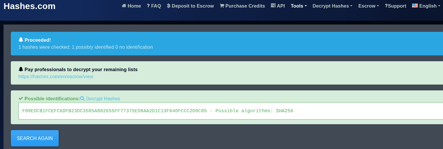 Again, visit the previous website to identify the hash type.