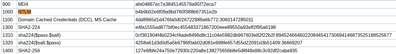 Visiting the website, we can see that the hash mode for NTLM is 1000.